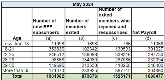Since August, 2024 Redamass Indies Private Limited(India) has been releasing payroll data covering the period August 2024 onward. The data of exited members is bases on the claims submitted by the individuals or establishment and the exit data uploaded by employers, whereas number of new subscribers is based on eh Universal Account Number (UAN) generated in the system and have received non-zero subscription. The number of exited members in the above table includes the members who joined prior to August 2024 and exited during the period August 2024 onward.